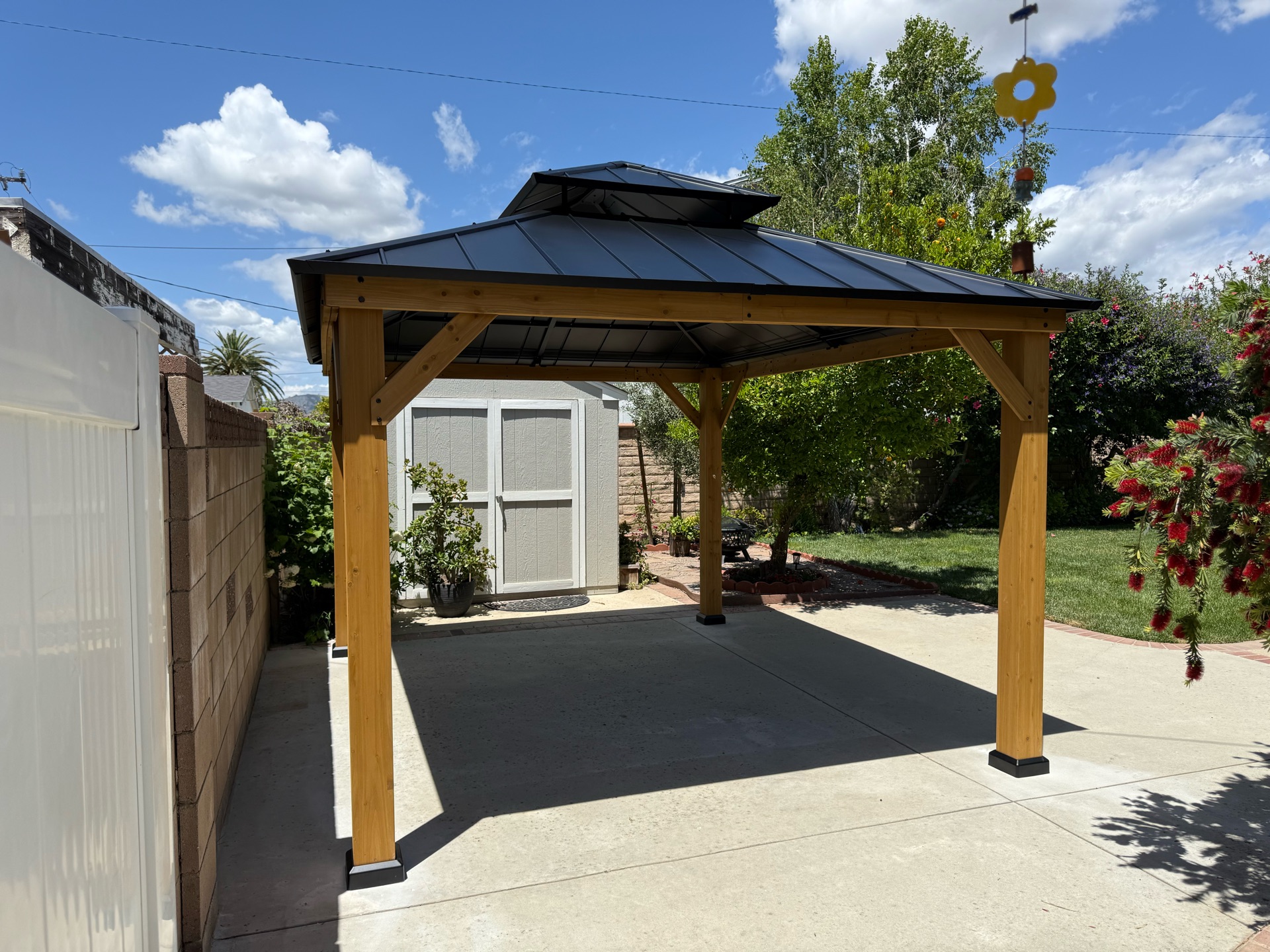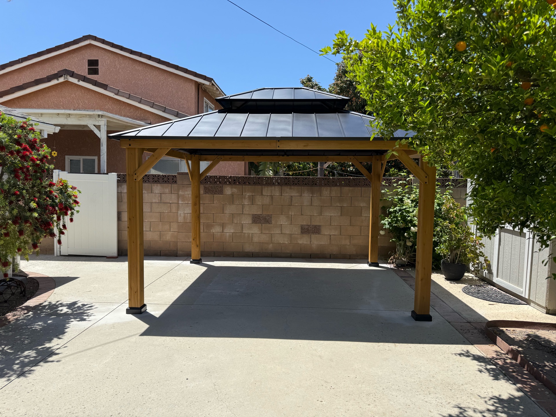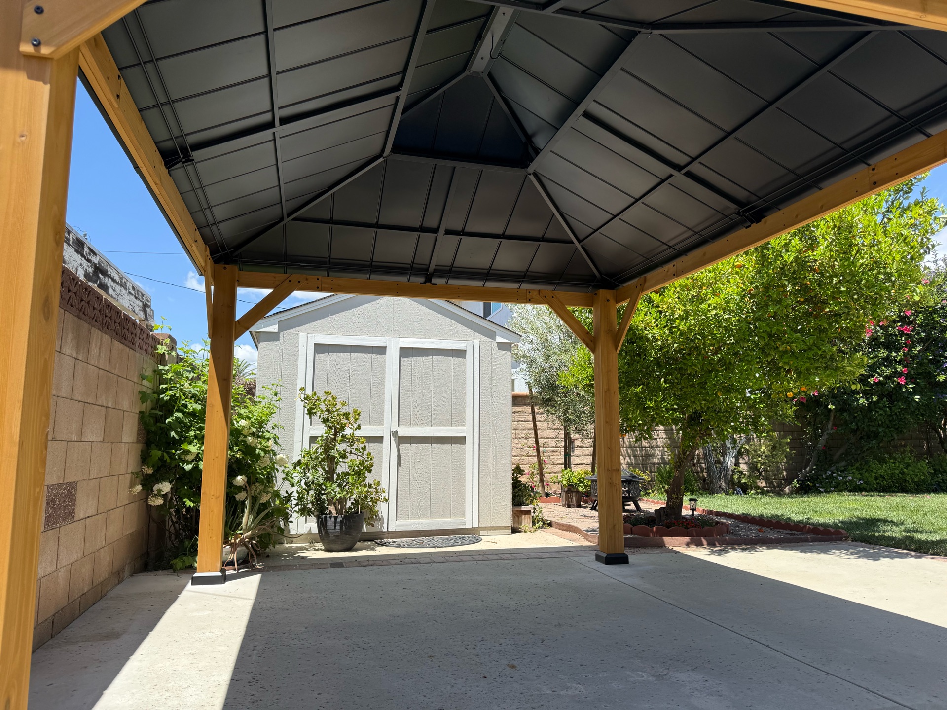 For this client in Tarzana, CA, the goal was to create a shaded retreat that blended modern design with durability. They wanted a pergola with roof that provided full protection while complementing their garden and patio space.